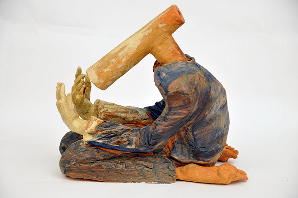 “Fallen” 46X29X28 cm, Ceramic-Wood, 2017