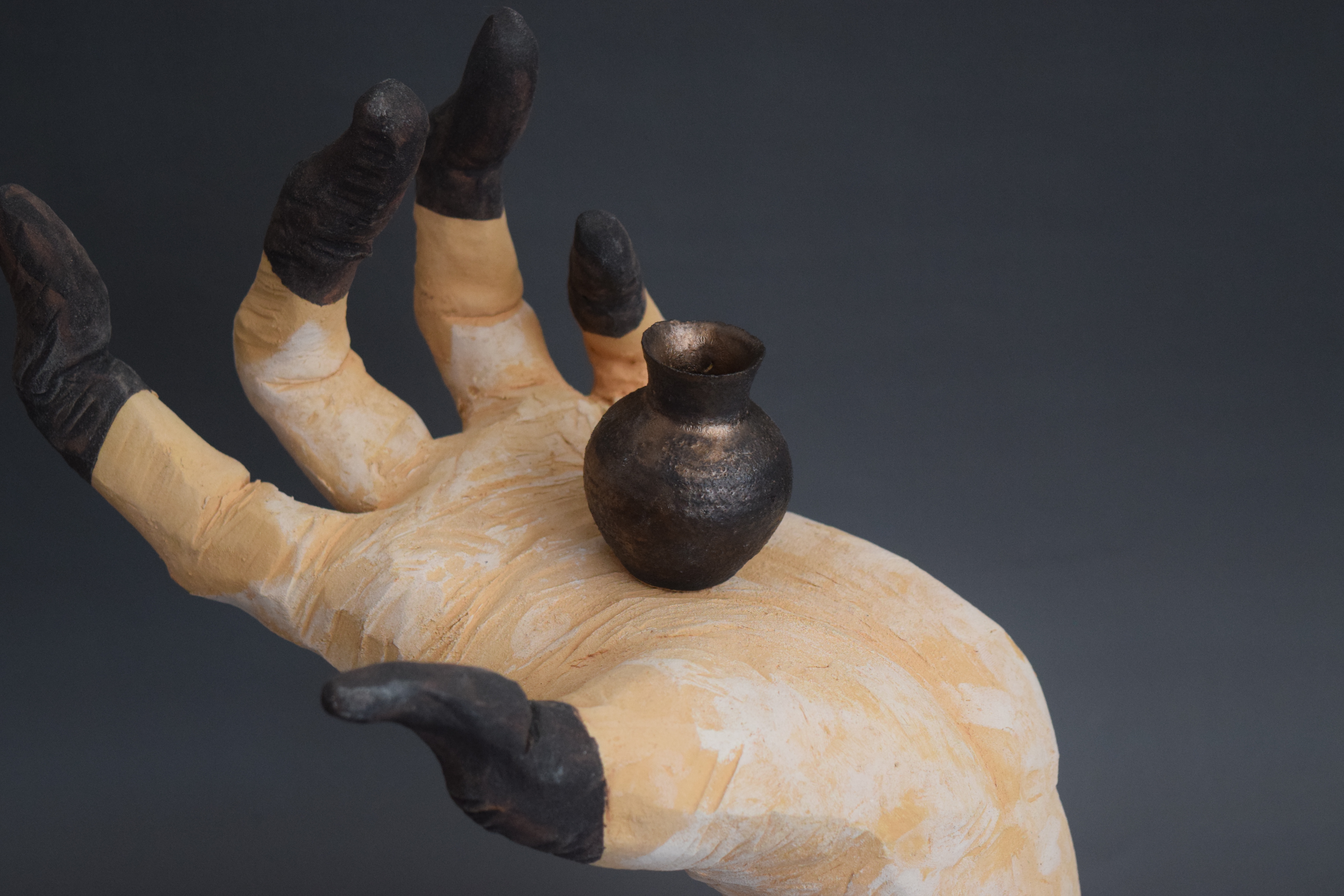 “ Hand of Civilization” 33X23X30 cm Ceramic-Wood, 2017