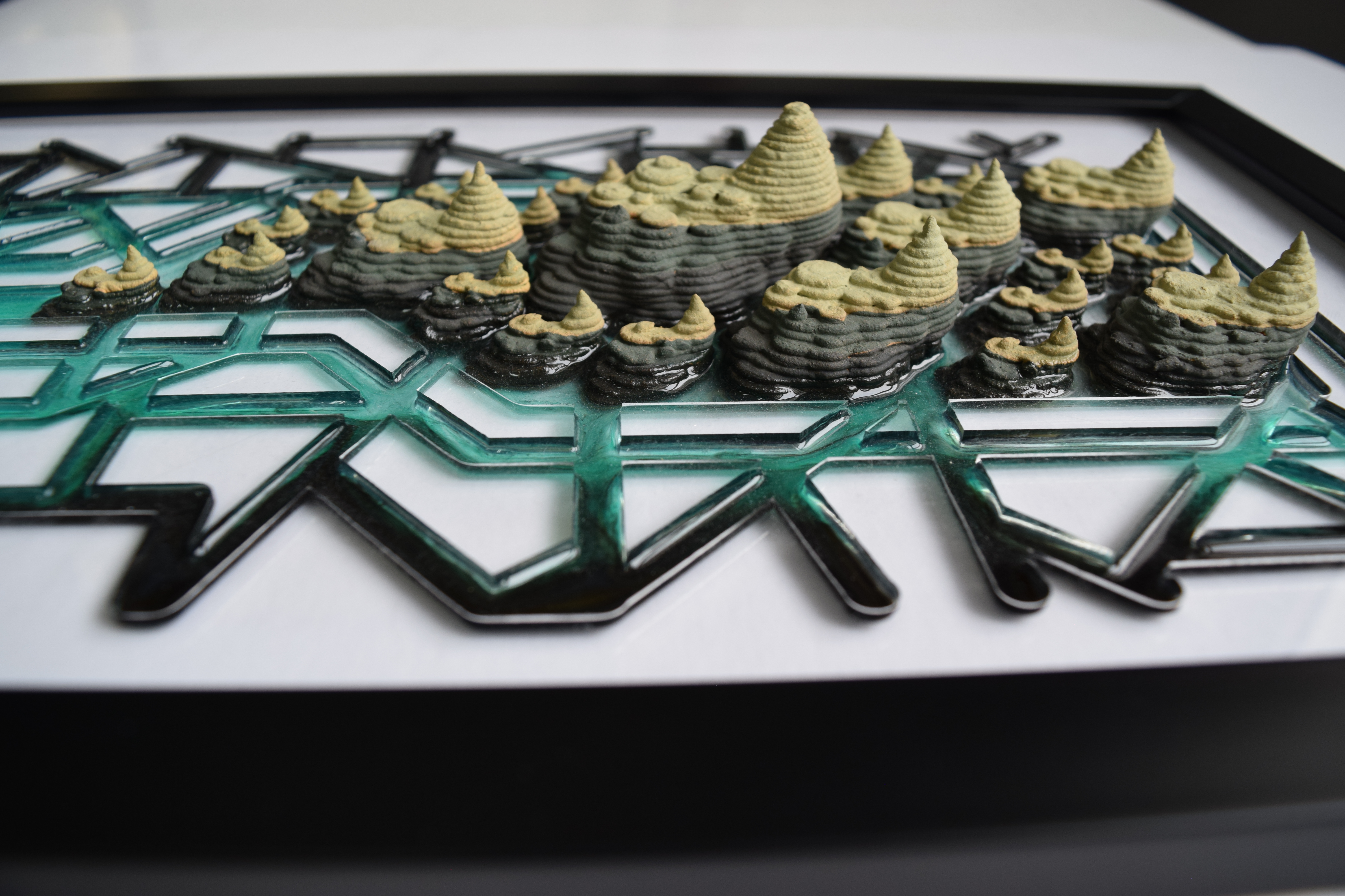 “Serial” 45X3,5X24 cm, Ceramic- LDP 3D Printer, Epoxy, Plexiglass 2019